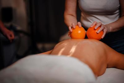 Spüre die wohltuende Wärme, wenn heiße Orangen sanft über den Körper gleiten und Verspannungen lösen. Sanfte Griffe, ätherische Öle und eine Atmosphäre zum Abschalten. Gönn dir eine Auszeit und fühl dich rundum revitalisiert.75 Min€ 98.00Detail